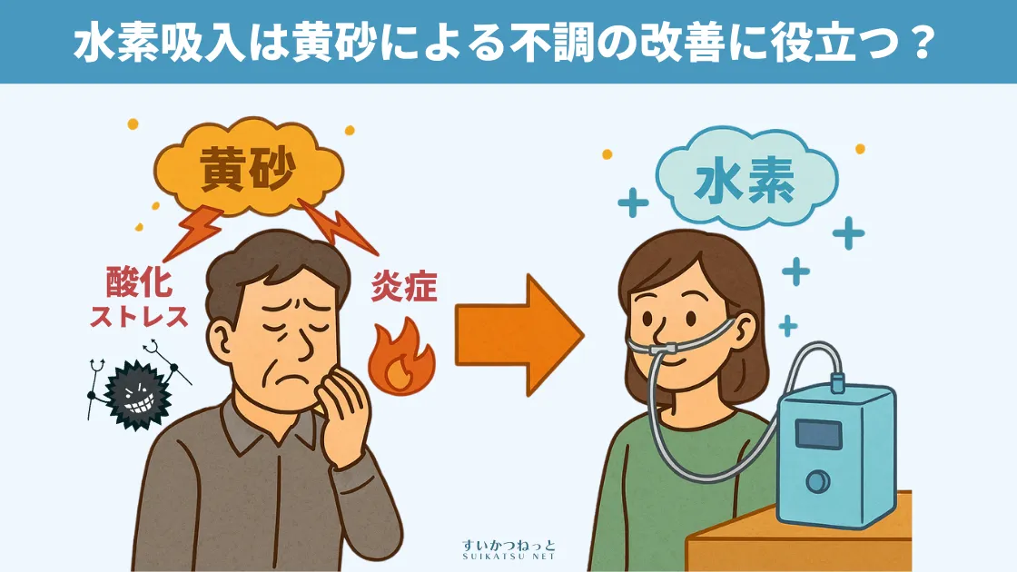 水素の持つ抗酸化作用と抗炎症作用が、黄砂によって引き起こされる酸化ストレスや炎症を軽減する可能性があります。ただし、現時点では黄砂対策としての水素吸入の効果を直接的に検証した臨床試験はまだ十分ではなく、あくまで可能性の段階と言えます。