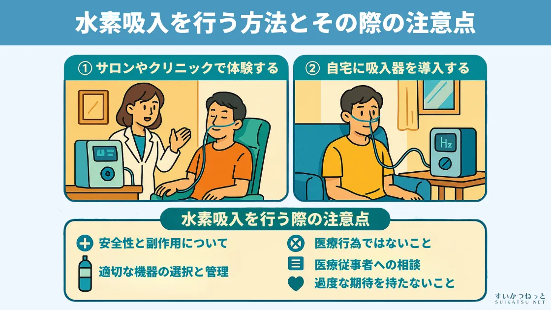 「水素吸入、ちょっと試してみたいかも…」と思った方へ向けて、実際に始めるにはどうすれば良いのか、そして注意すべき点について説明します。
