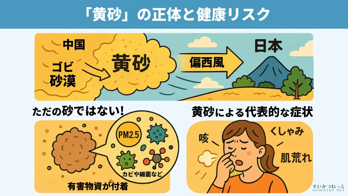 黄砂は単なる砂ではなく、様々な有害物質を含む複合的な環境因子であり、呼吸器系の症状、アレルギー症状、全身の不調など、様々な健康問題を引き起こす可能性があります。