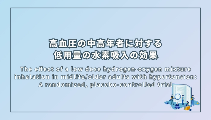 高血圧患者60名を対象に行われたランダム化比較試験(RCT)では、水素と酸素を混合したガスを1日4時間・2週間吸入したグループとプラセボ群(ただの空気を吸入)を比較しました。
