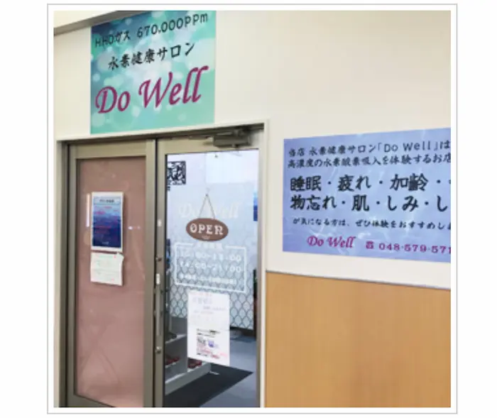 『水素健康サロンDo well』は鴻巣駅より徒歩3分のショッピングモール内にあるサロンです。水素健康サロンというだけあって、水素酸素吸入に加えて水素フェイスパックのメニューもあります。